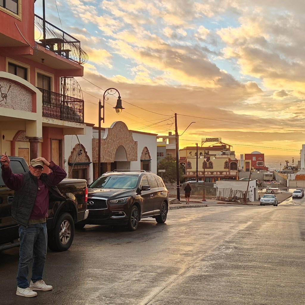 Outside Grapes and Barley. Malecon below and the Sea of Cortez.
